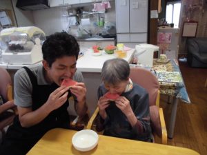 2月は、毎年恒例の焼き芋の行事がありました。ゆめの里入所・ゆめの里デイケア・デイサービスみらい・グループホームの皆さんにホクホクの焼き芋をお届けしました。