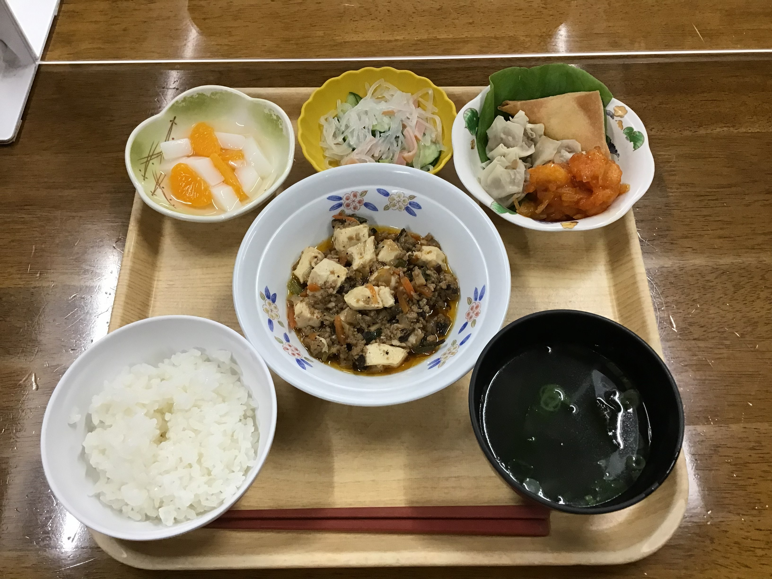 麻婆豆腐、シュウマイ、春巻き、エビチリ、春雨サラダ、中華スープ、杏仁豆腐。どれを食べても美味しくて大満足でした(#^^#)