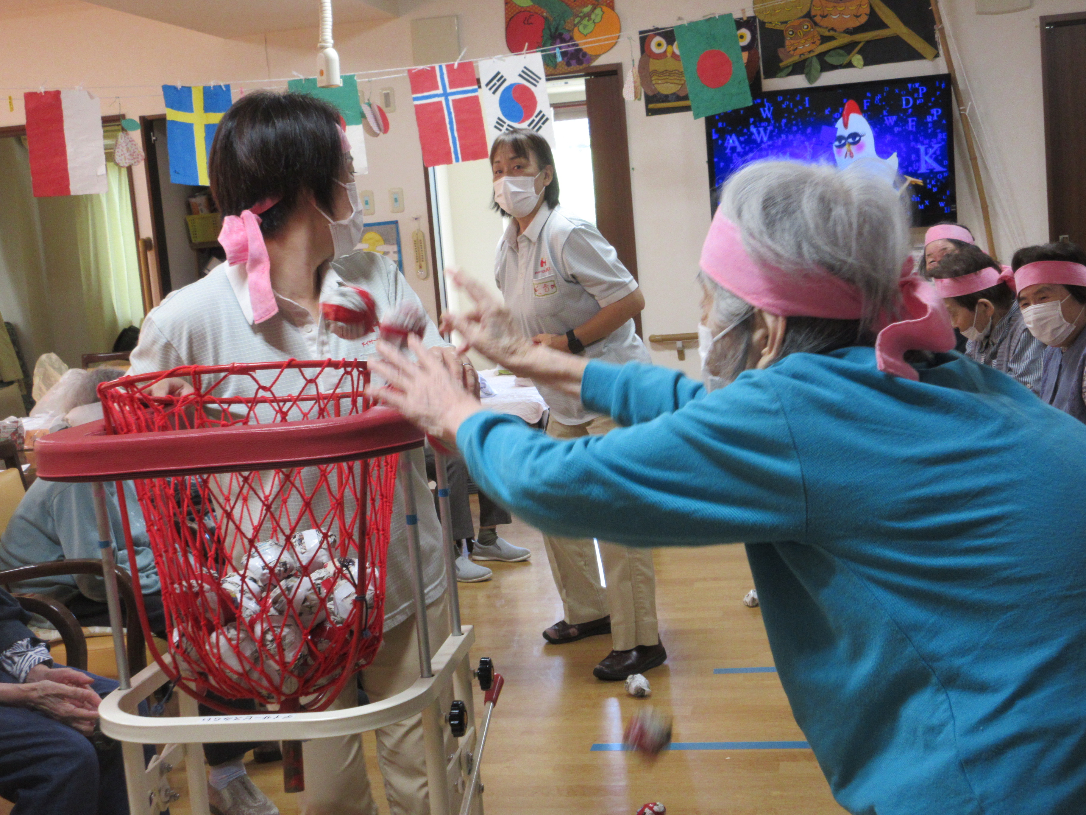 玉入れルール!立たない!拾わない!スッタフに当てない!お約束。