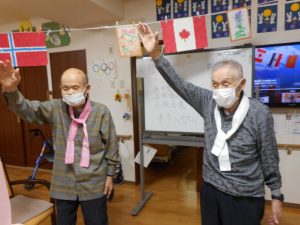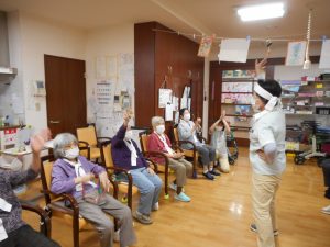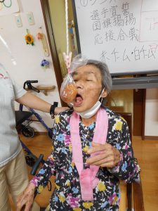 《運動会》デイサービスみらい 10月11日(土) 運動会を開催しました♪ 紅組と白組に分かれて、選手宣誓のあと応援合戦で志気を高めました(^^)/ 物送り、タコ送り、玉入れ、パン食い競争と白熱した競技で皆さん頑張りました(*^^)v 職員もパン食い競争頑張ってます(´▽`*) 勝者は赤組❣ 白組も大健闘でした。