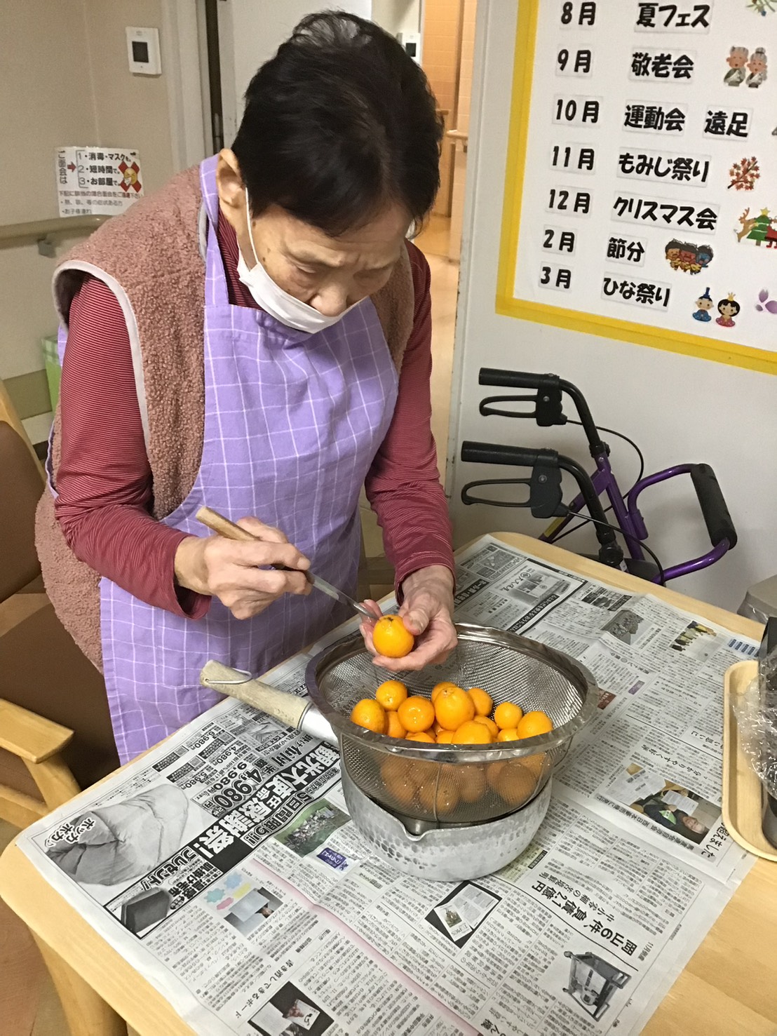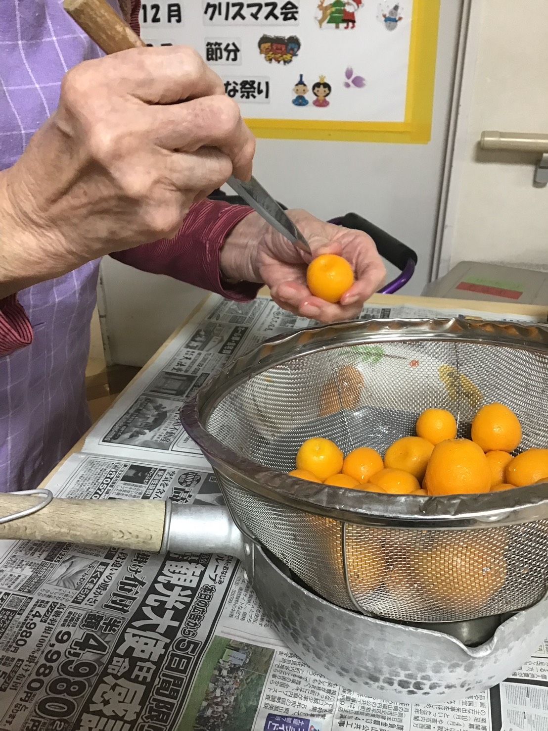 さてどうやって食べようか……🧐🧐🧐正月のおせちが浮かんで、金柑の甘露煮!!!!!これならおすそ分けで食べれるのでは💡Rさんは元々調理員さん、入所直前まで台所に立っていたと息子さんの話を思い出し、金柑甘露煮食べたいな~作ろと誘ってみたというか、作って~とせがんでみた😅日曜日に作ってくれていました。