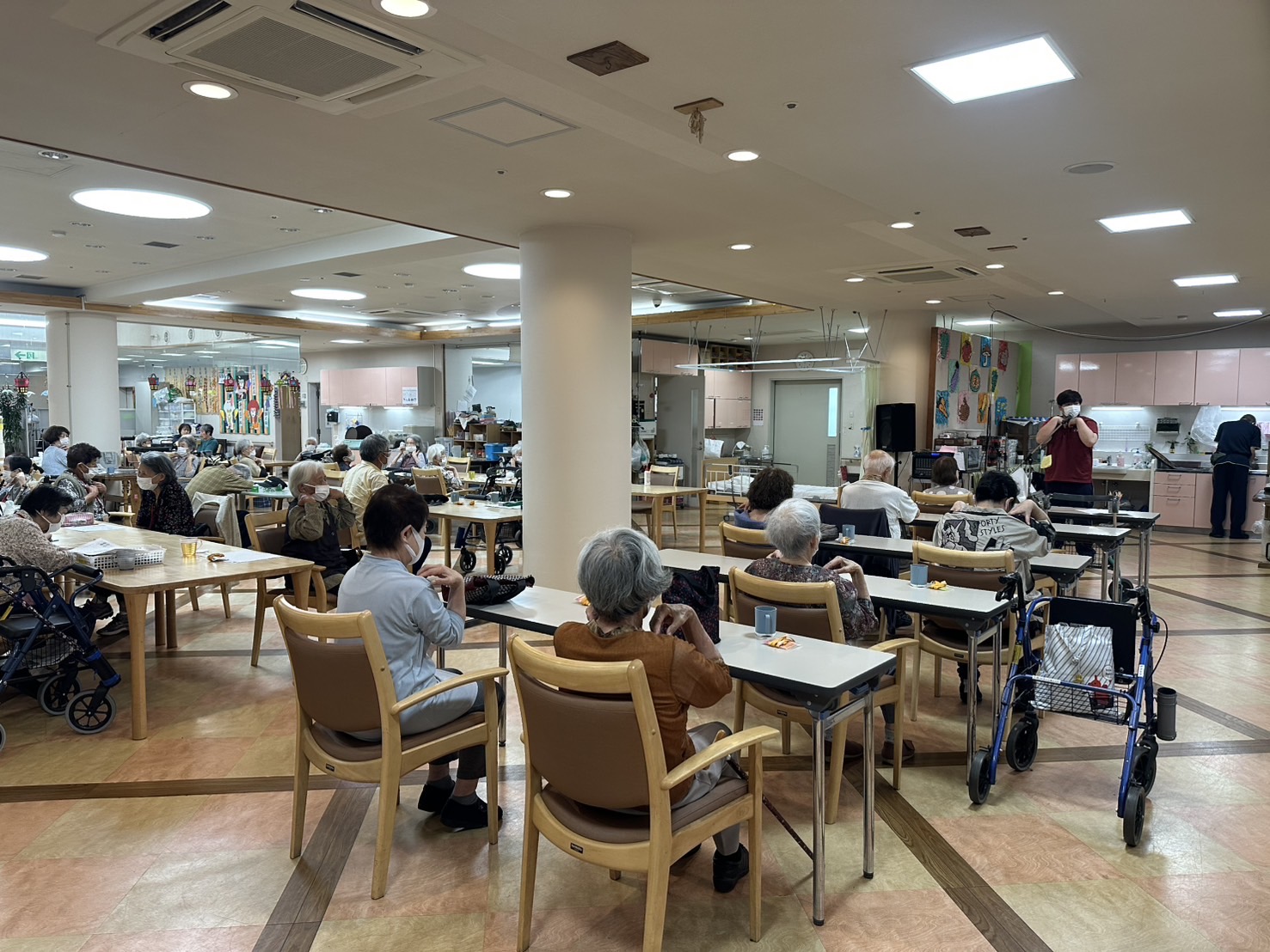 そして、そして25日は「若葉ゆめまつり」が開催されました。屋台メニューはうどんや焼きそば、たい焼きなどなどたくさんありますが、きざみ食やミキサー食の人が食べられるものが少ないことがいつも心苦しかったので、『なんとかしたい』と栄養士が「やわらかわらび餅入りおしるこ」と「ティラミス」を初出店!!