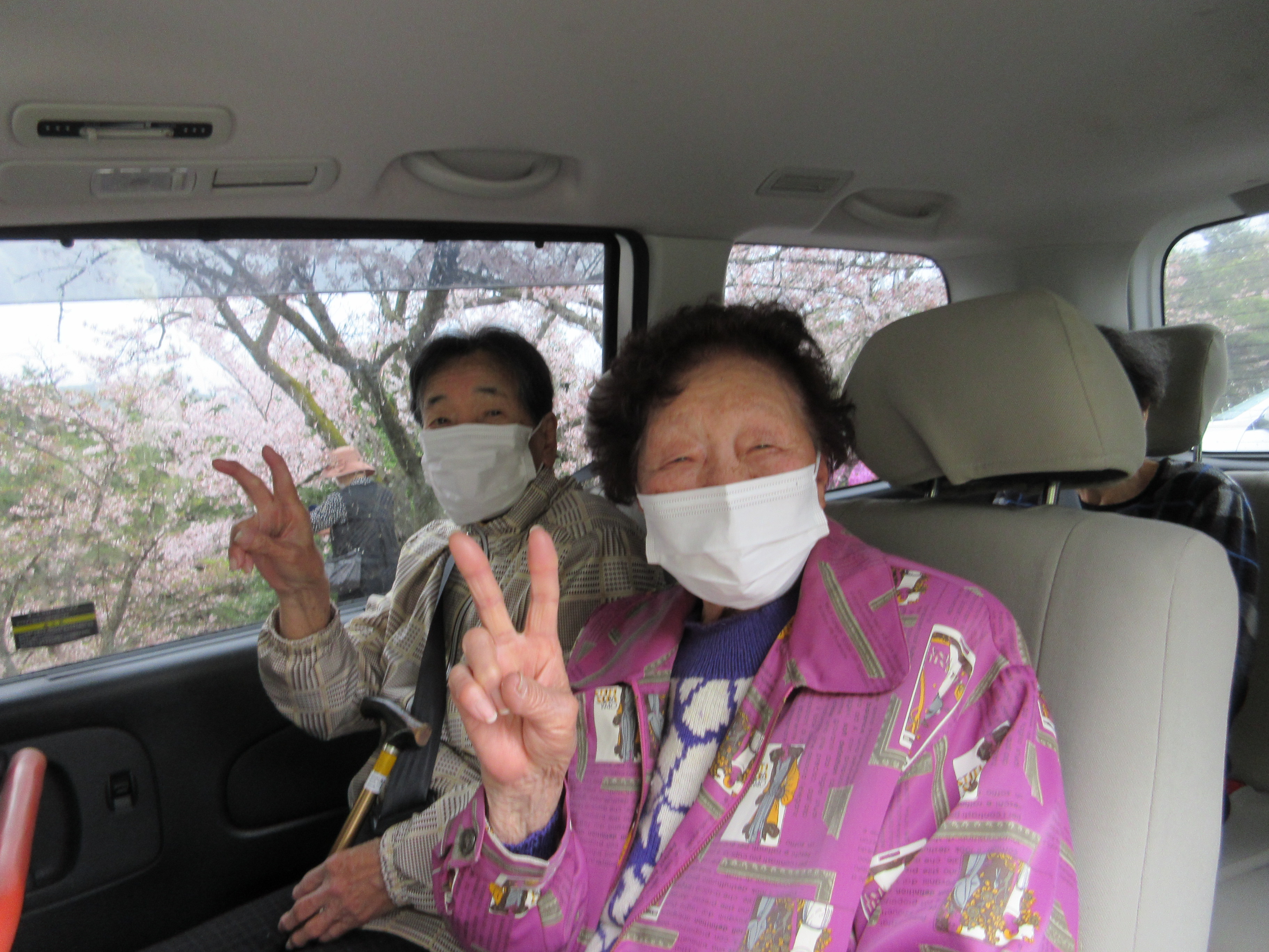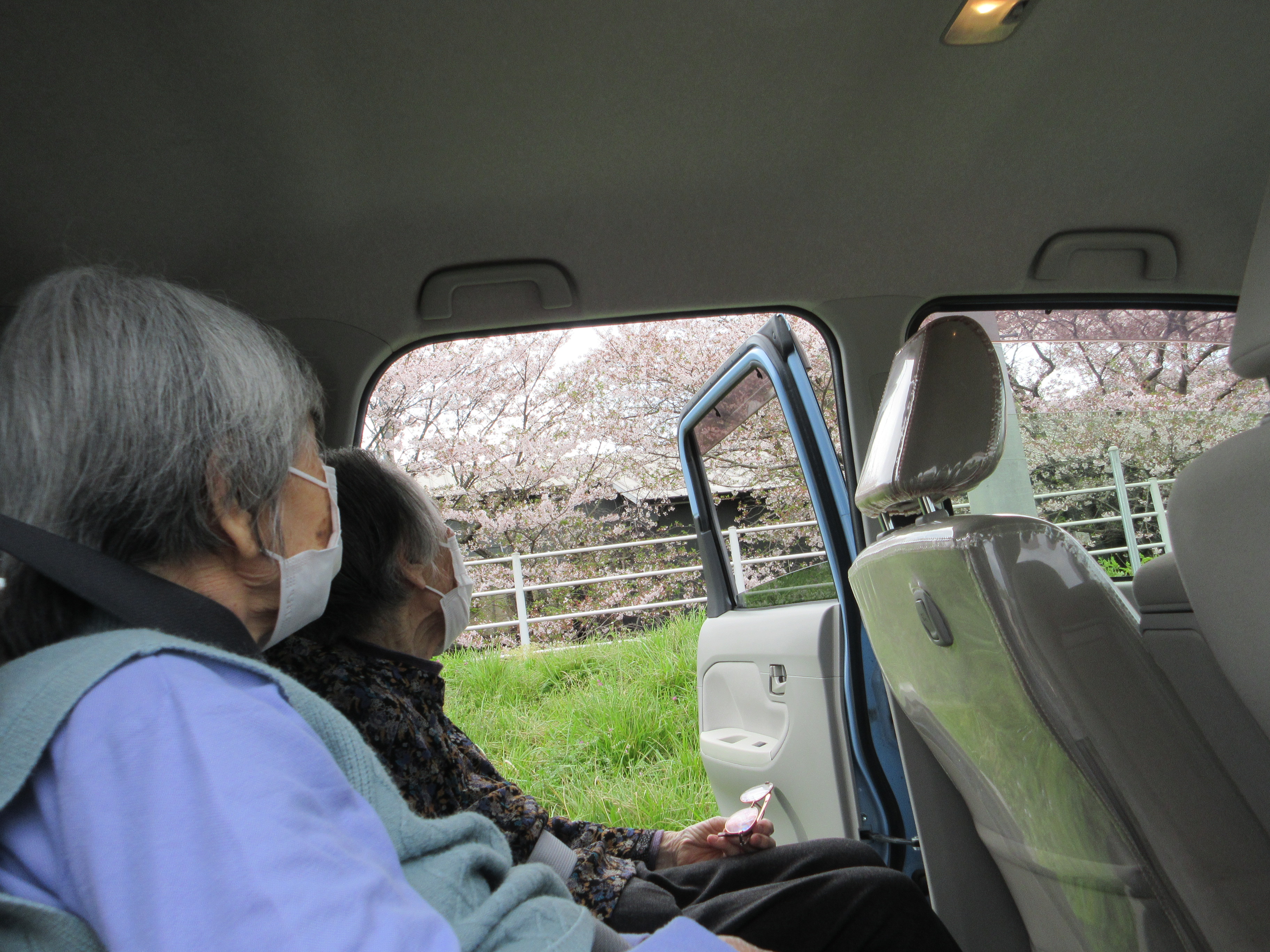 利用者様と一緒にお花見をしながら、話をしていると「綺麗な桜を観ながらお茶会でもしたいな~」という話になり、桜を観ながらお茶とお菓子を頂きました。