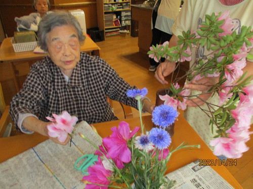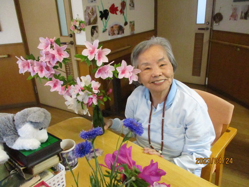 きれいなお花に囲まれて利用者様は元気に過ごされています。