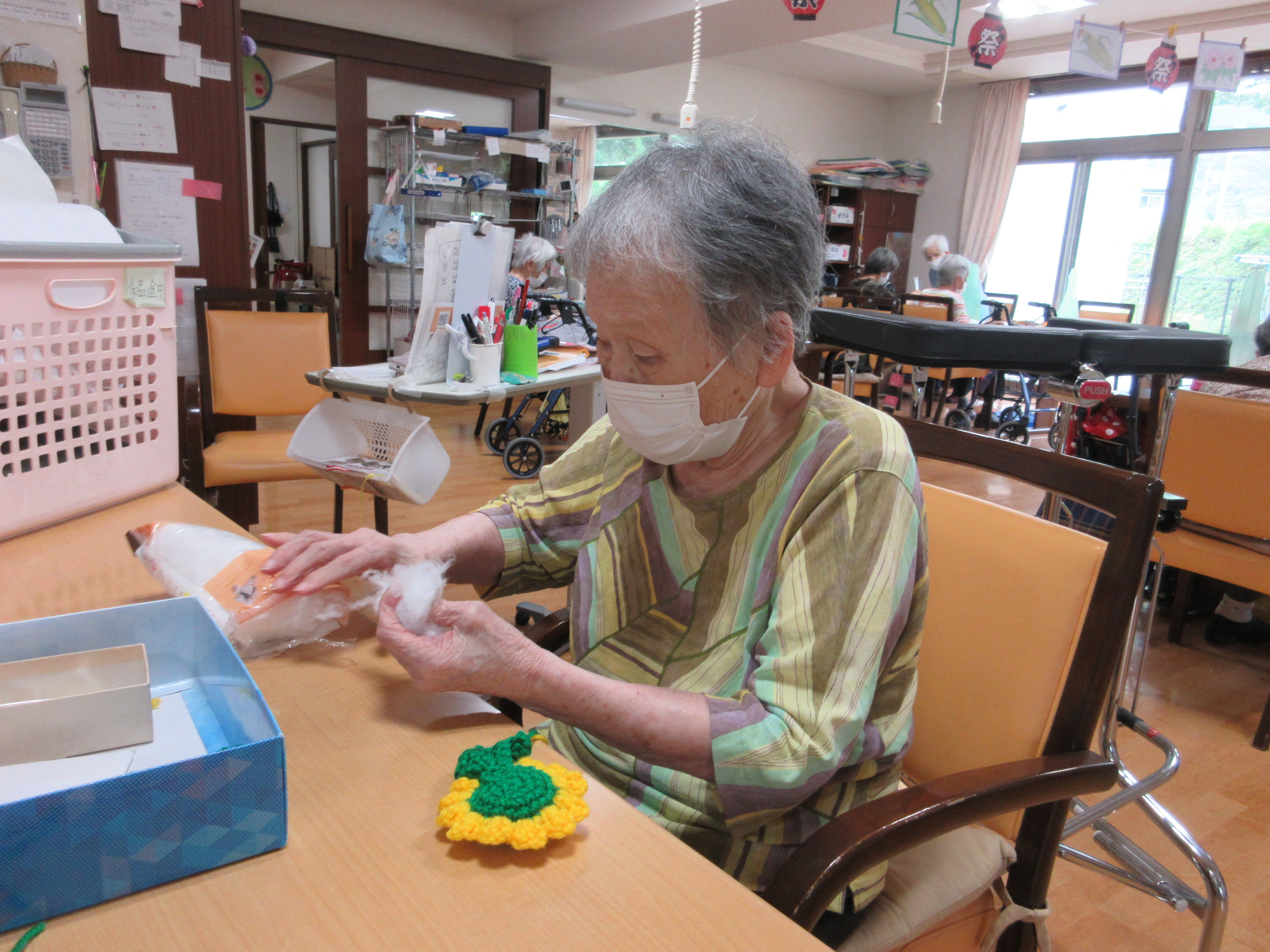 事前にご家族様にも協力していただき、スイカケーキを作成。