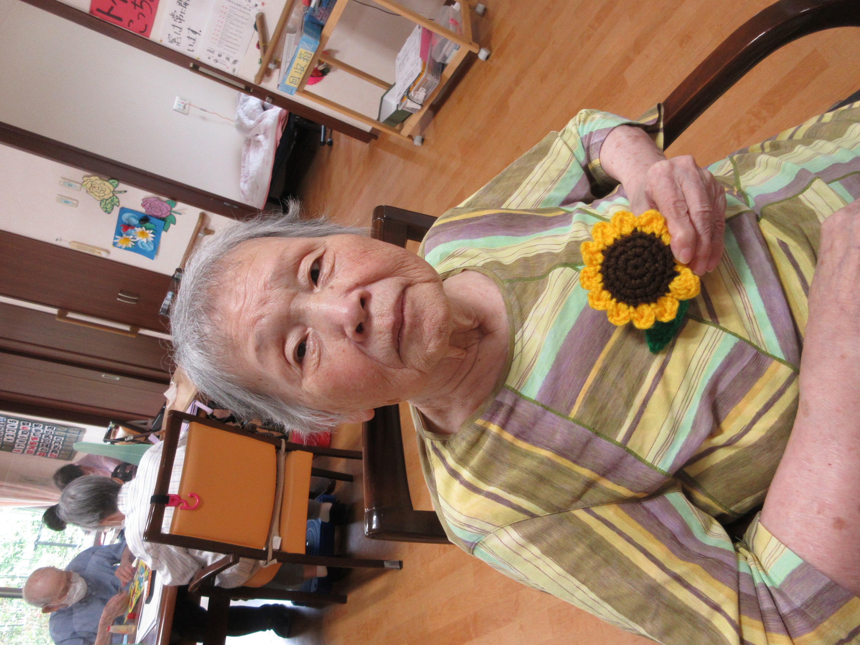 「わぁありがとう。」と言ってくださり、おいくつですか?と尋ねると、「99才。」と言われ、スイカを召し上がってくださいました。