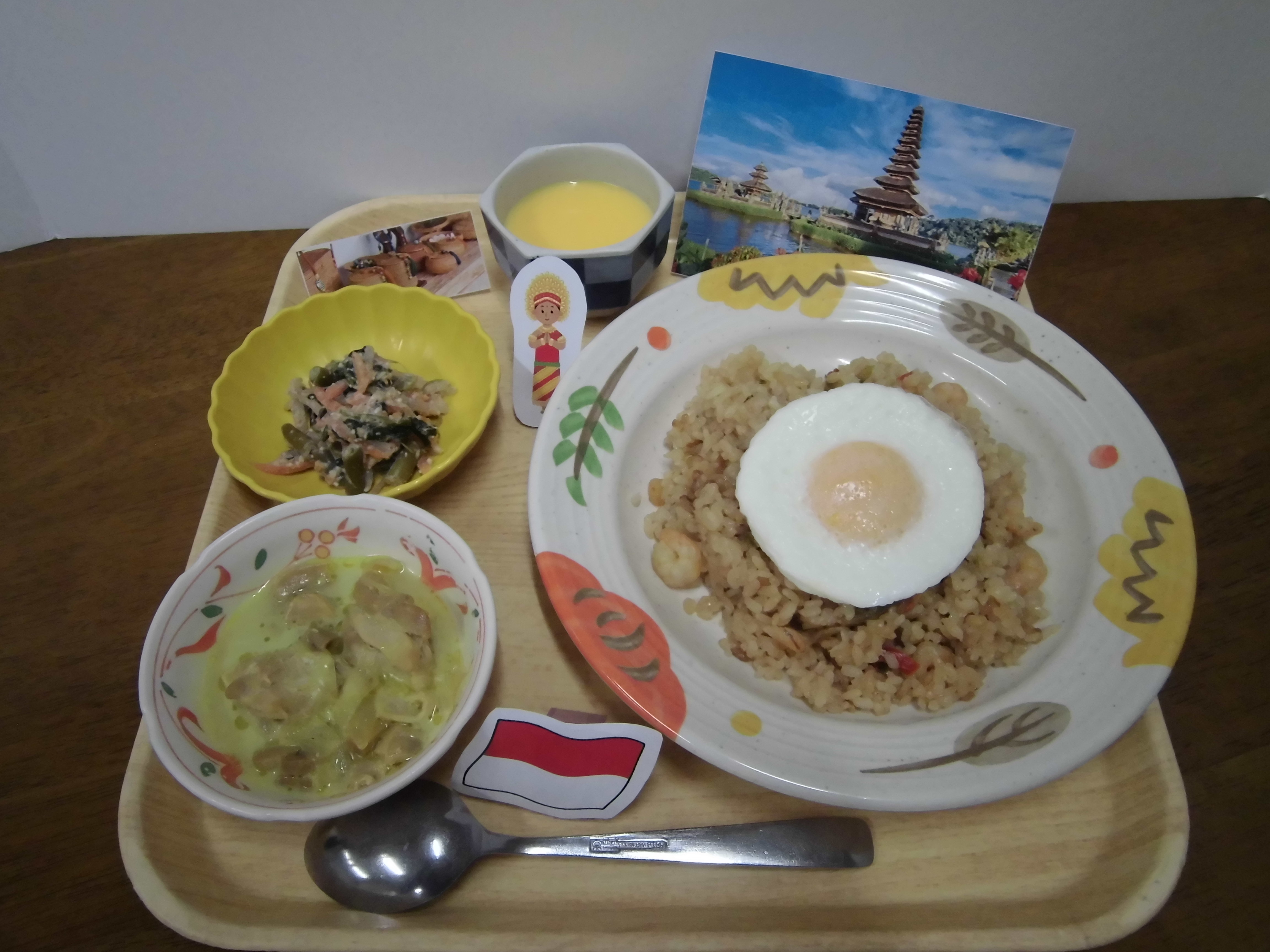 私のお勧めは、12月のインドネシアのナシゴレン。厨房さんが、本格的な味付けにすると張り切って作ってくれました。