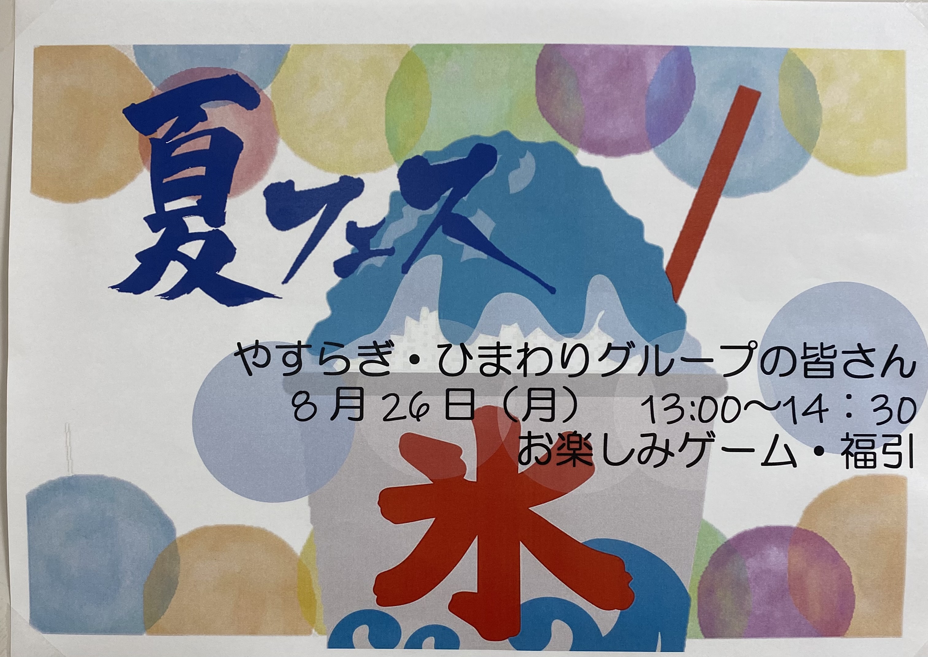 ゆめの里の入所フロアでは、暑さを楽しむ「夏フェス」を開催いたしました。