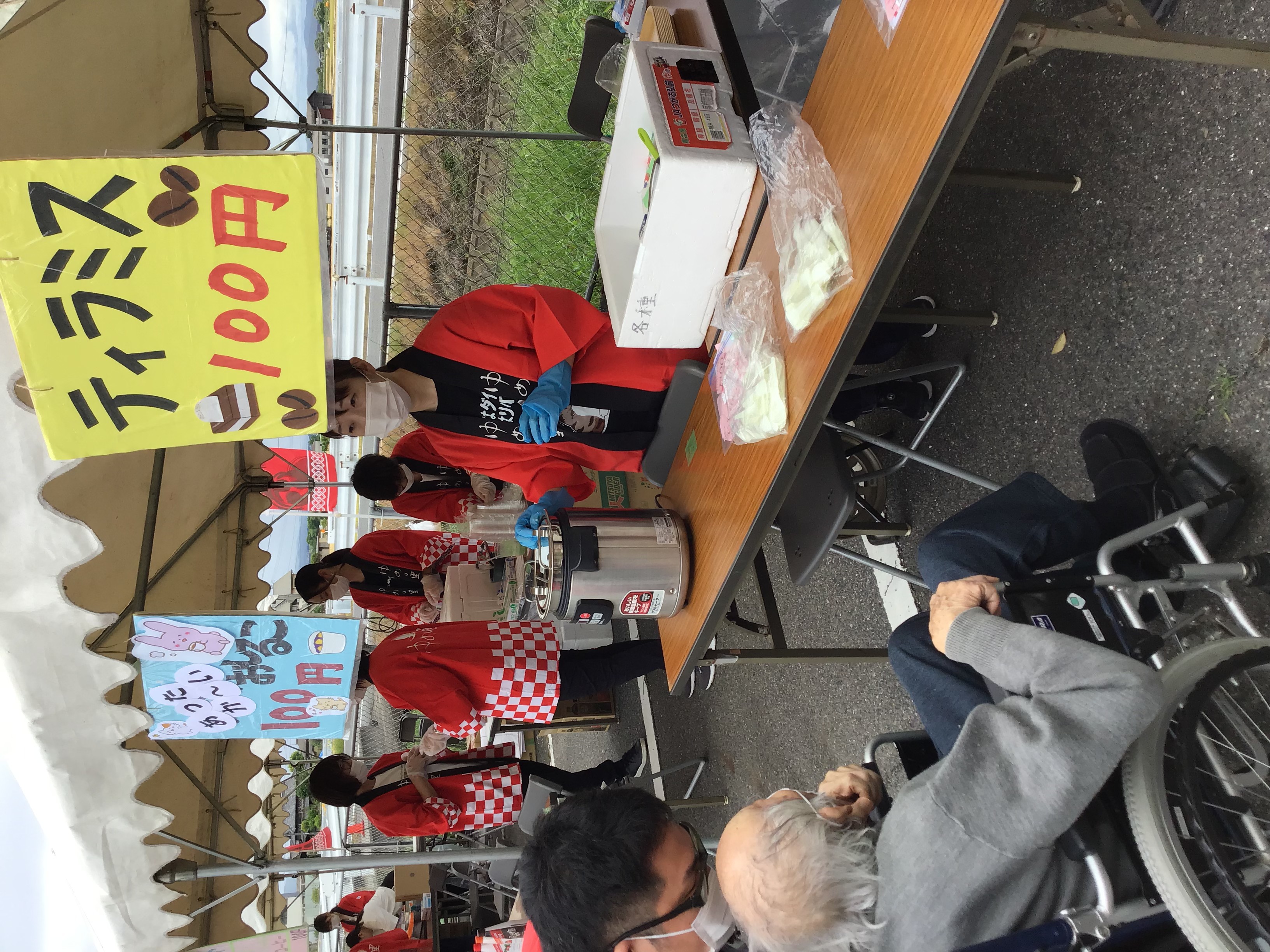 ゆめこうばの美味しいおうどんやパン、焼きそば、フライドポテト、たい焼きなどの定番メニューから、今回は普段嚥下食を召し上がられている方も食べられるようにとティラミスやぜんざいもメニュー入り。子どもさんが遊べるスーパーボールすくいもありました。
