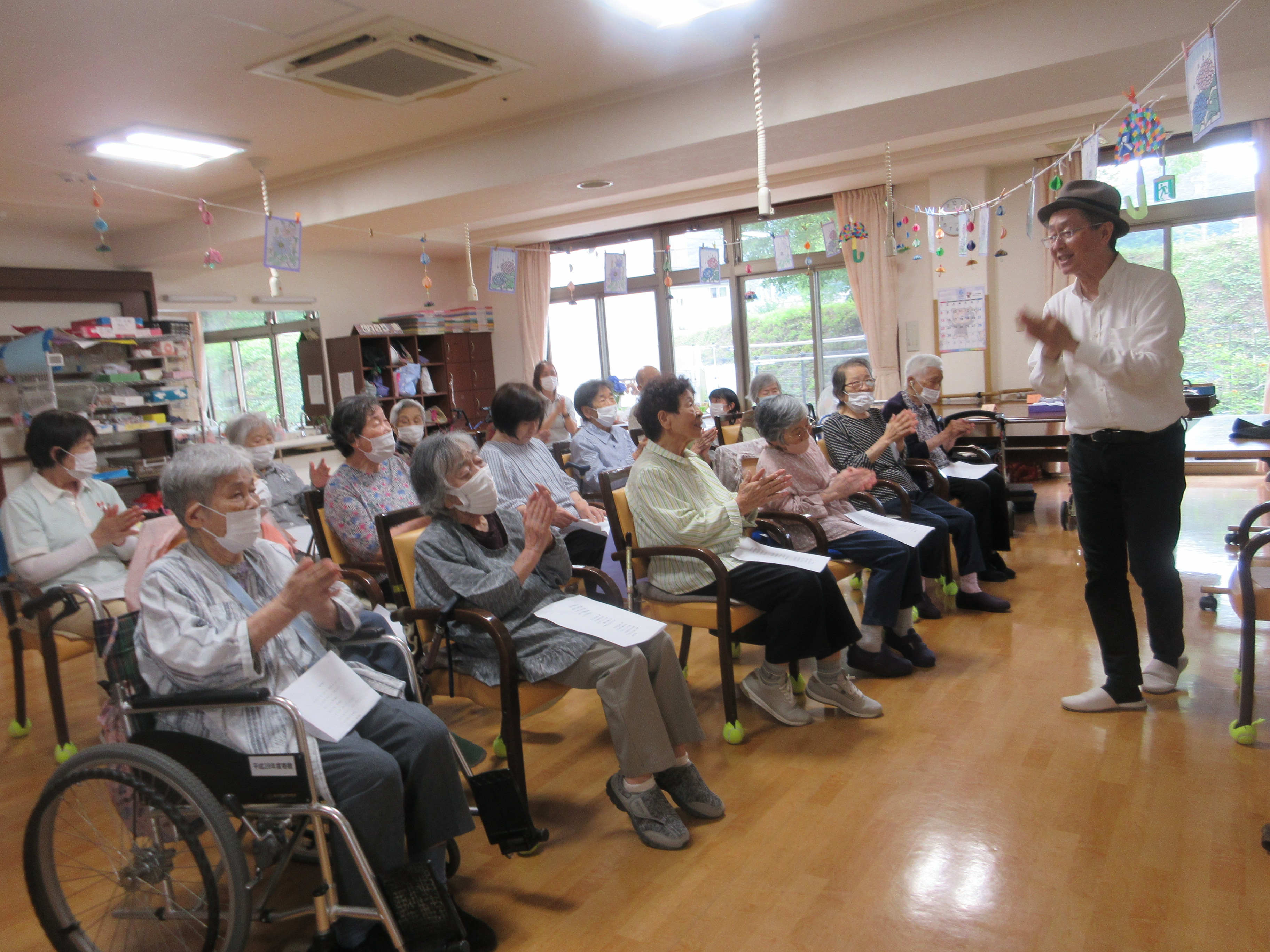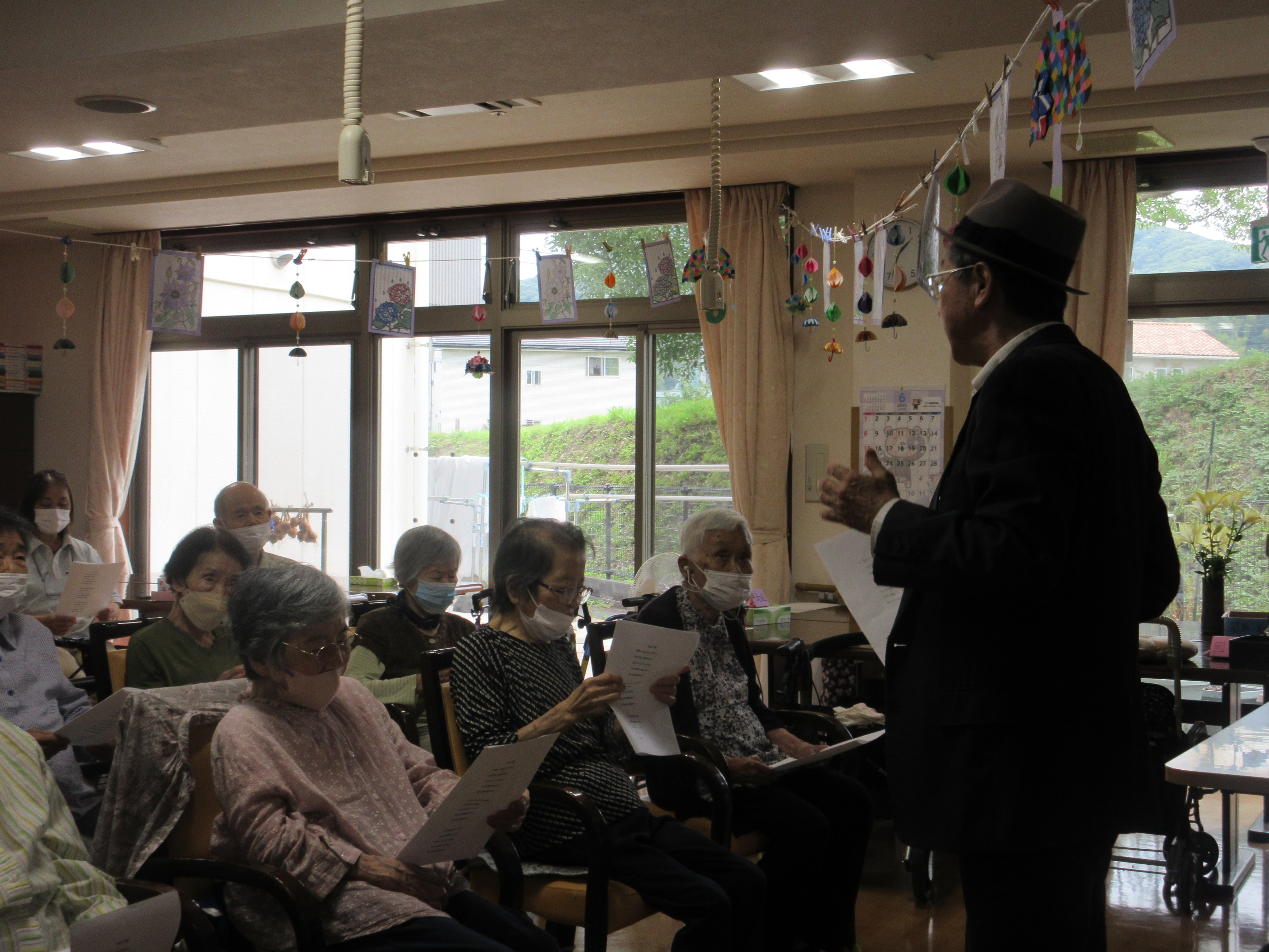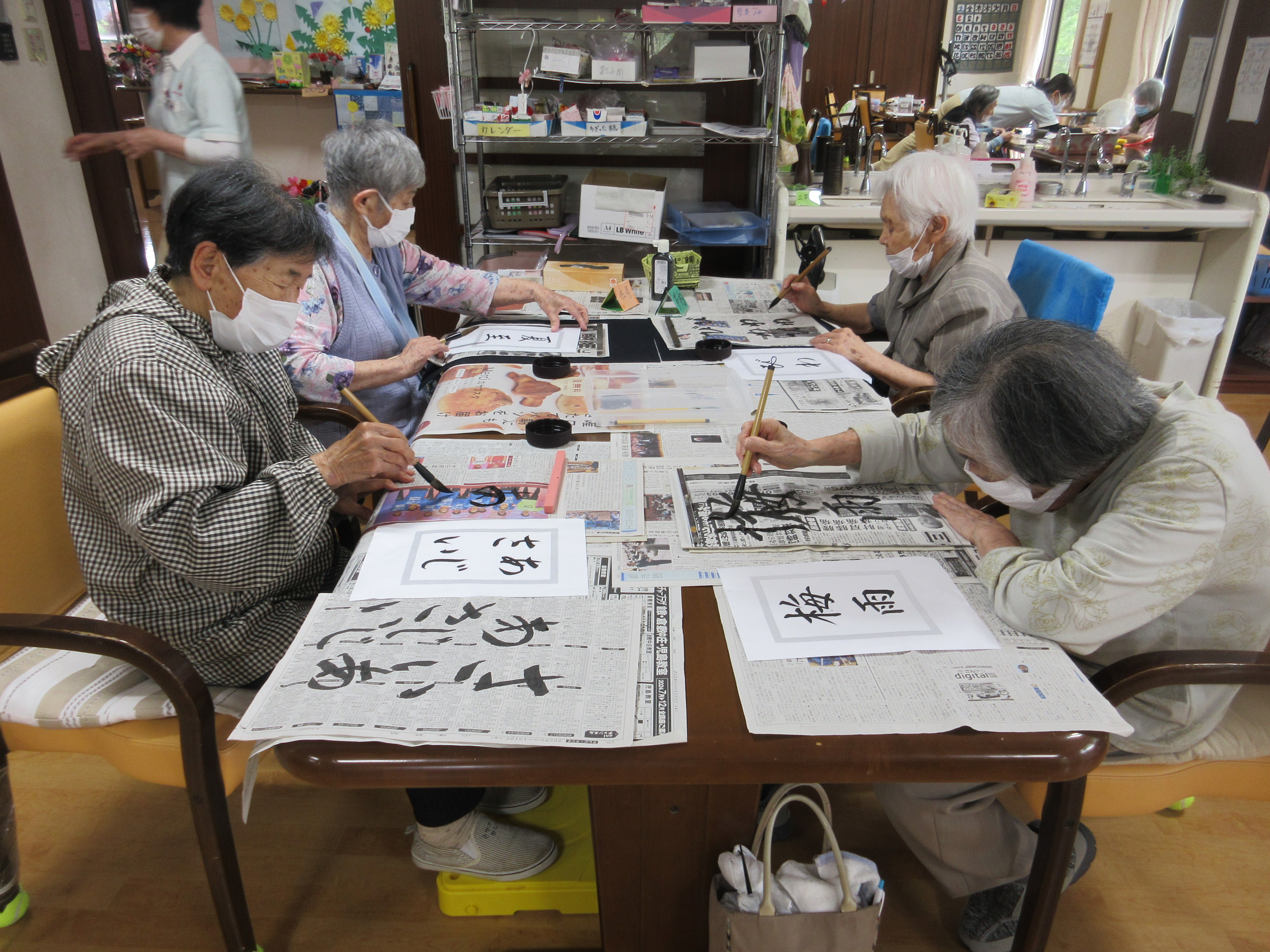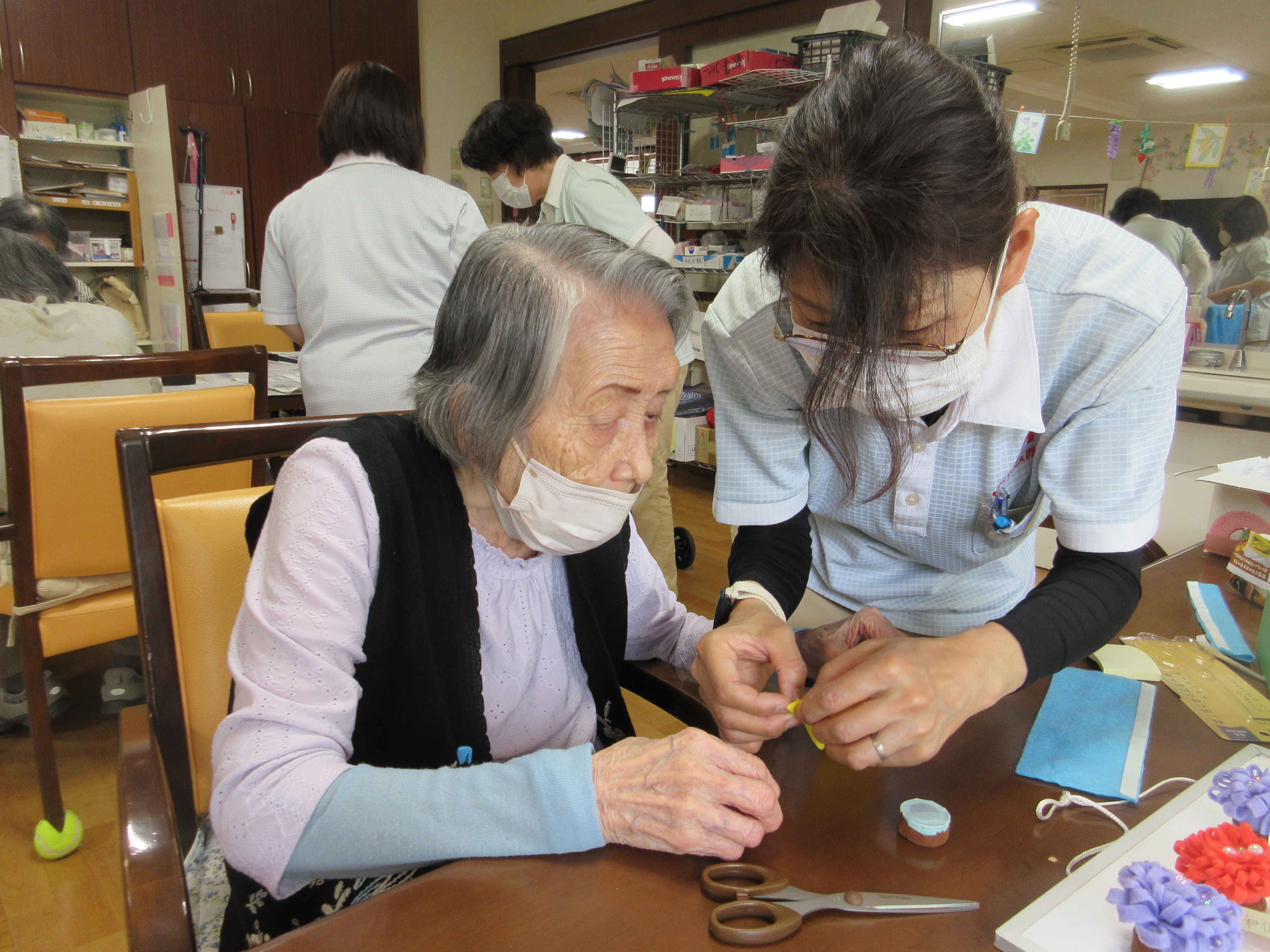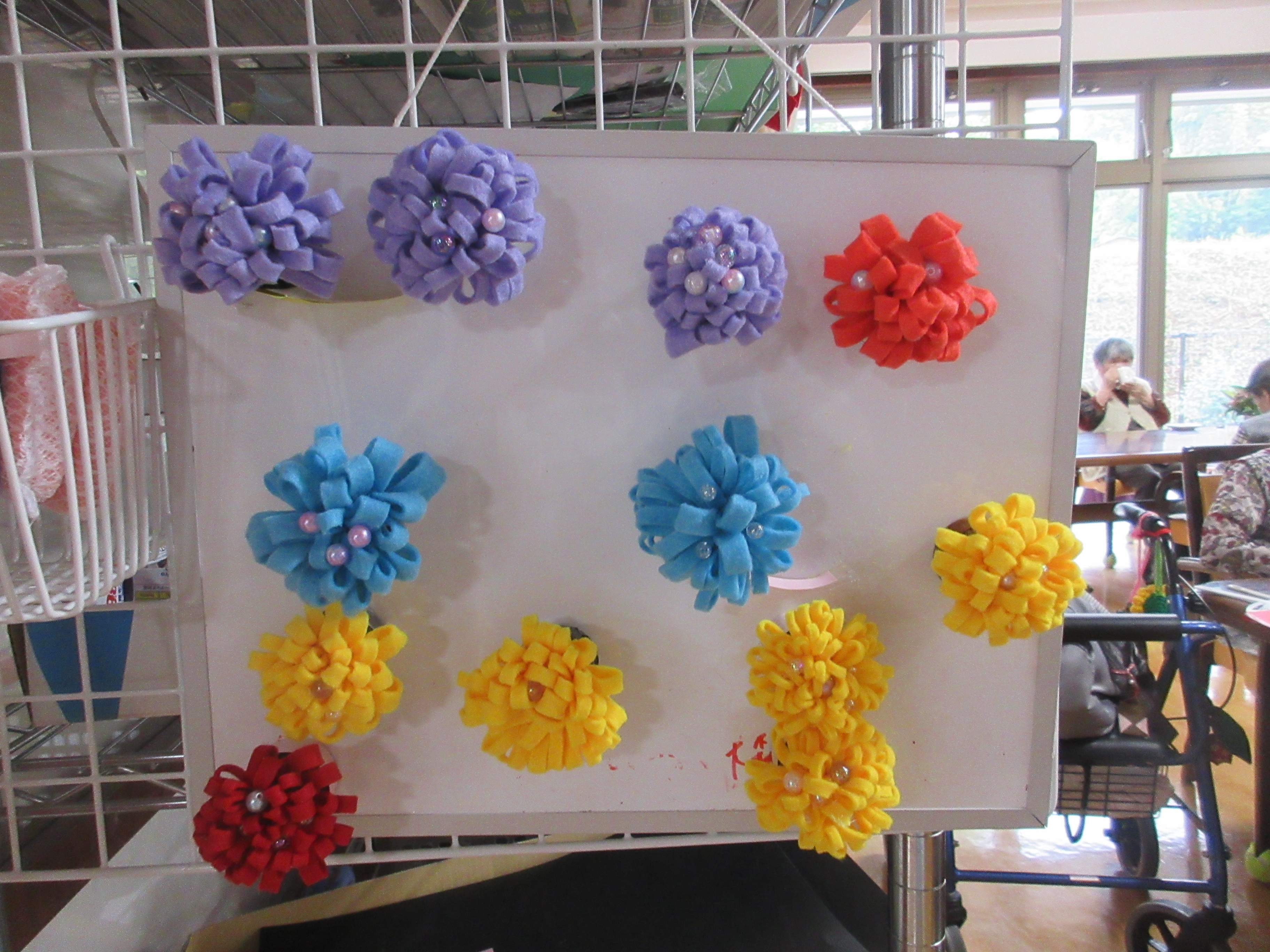 そして、そして5月の母の日、6月の父の日にはかわいい箸入れを作りました。カーネーションはおはな紙、ネクタイは折り紙で作っています。若い栄養士さん達のアイデアはいつも素敵なものばかりです。