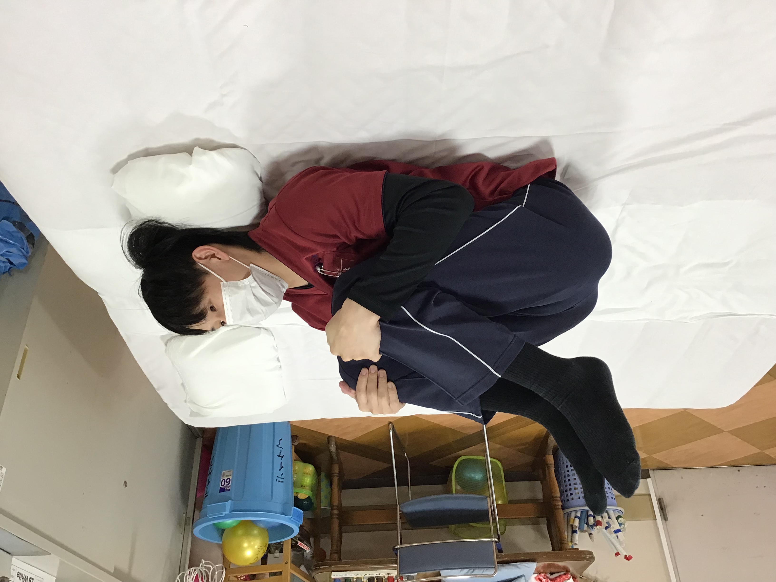 このように膝を抱えて、自分のお腹に引き寄せます。