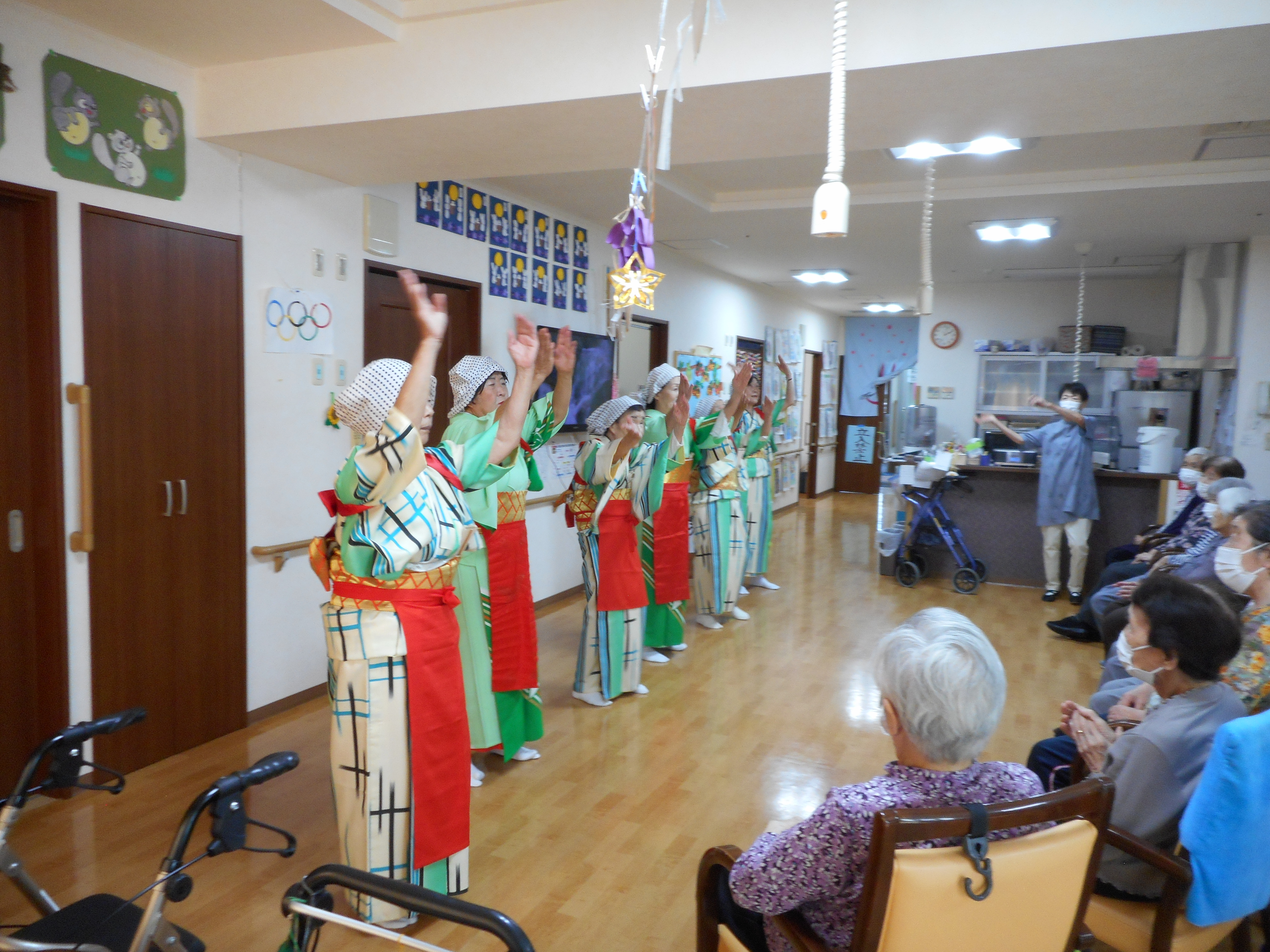 入所者のおやつにお好み焼きをしました。せっかくなので、利用者さんにもお手伝いをお願いしたら、最初は、「私がするん!?私にできるん?どうするん?」と不安な顔をしていましたが、やり始めると「もういいかな?よっ!」と掛け声を出しながら焼いてくれました。出来上がったお好み焼きを皆さん、おいしそうに食べてくれました。